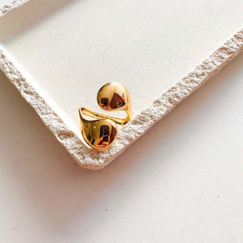 Modelo: Anel aberto com duas gotas polidas