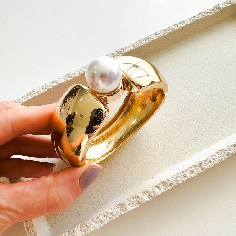 O Bracelete Largo com Pérola Central é uma peça de impacto absoluto.