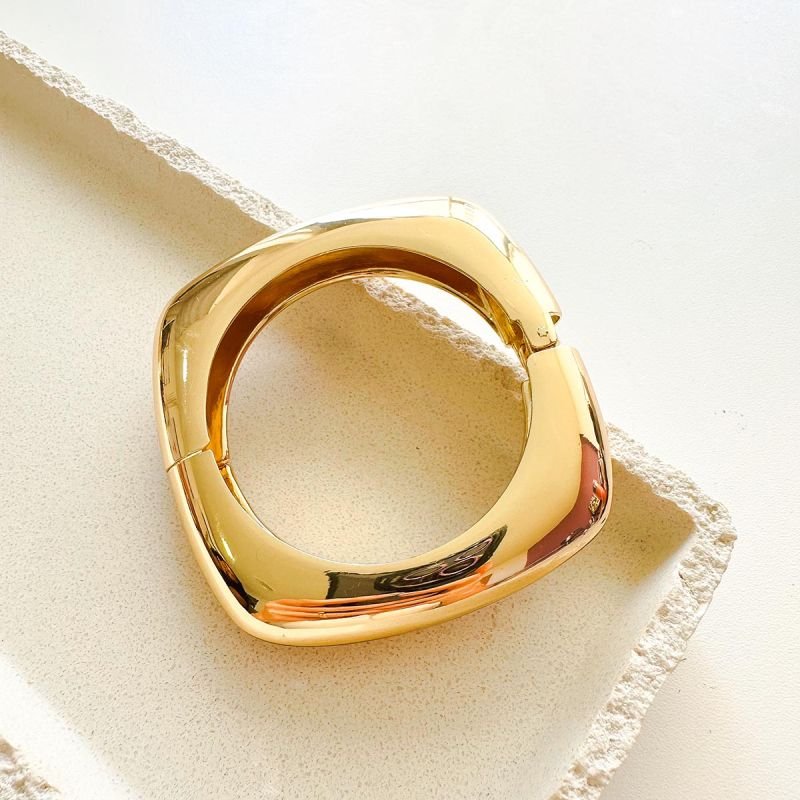 Bracelete Bijuteria Quadrado Achatado Orgânico – Dourado ou Prateado