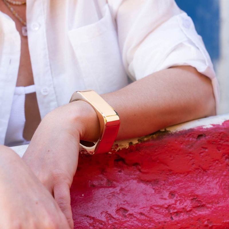 Bracelete rígido em formato quadrado com bordas arredondadas