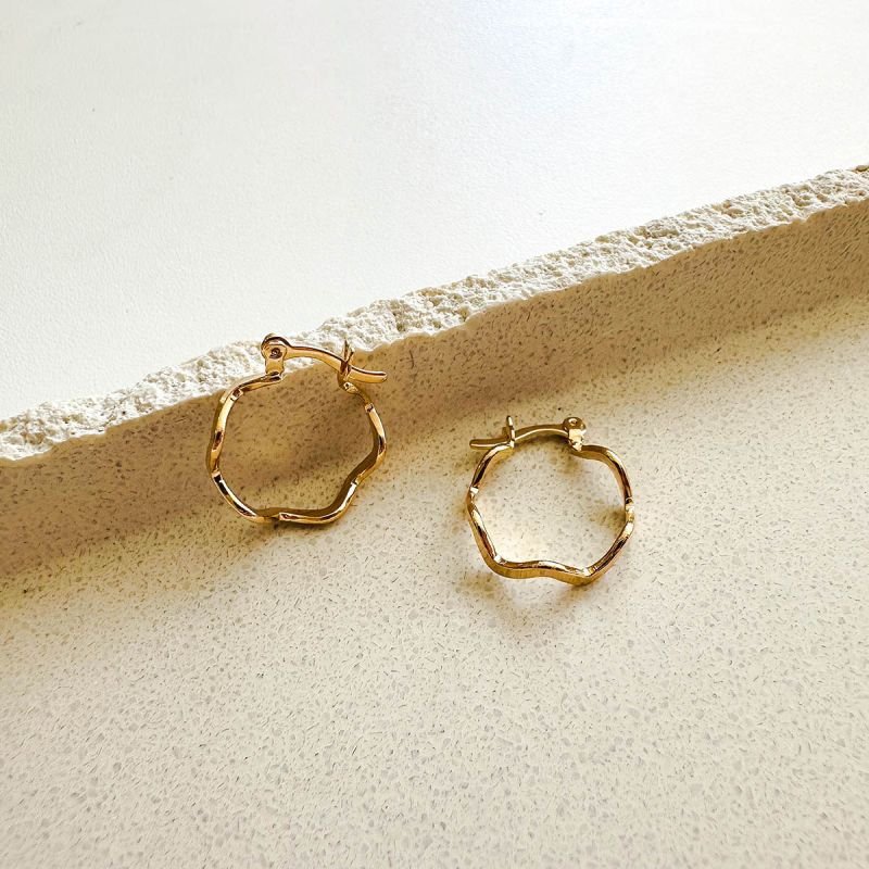 O brinco argola banhado a ouro 18k com design ondulado é a peça perfeita para mulheres que buscam um acessório moderno, artístico e cheio de personalidade. Seu formato irregular, com curvas suaves e movimento fluido, transforma a clássica argola em uma joia contemporânea e sofisticada.