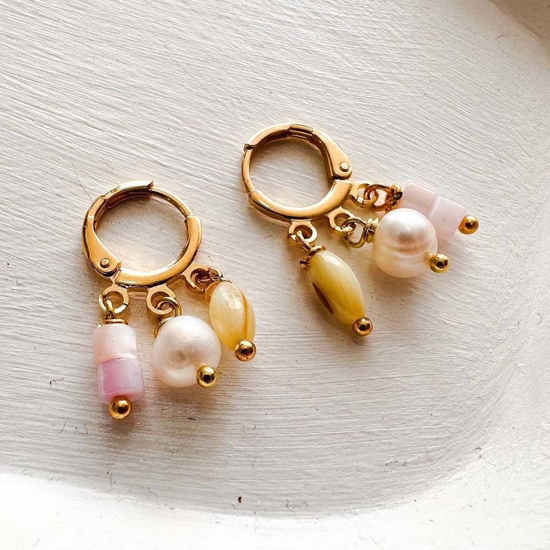 Brinco Argolinha Banhada a Ouro 18k Mix de Pérola e Madrepérola