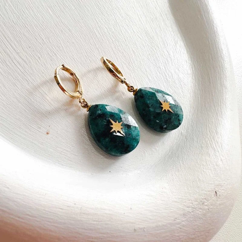 Brinco Argolinha Crisocola com Estrela