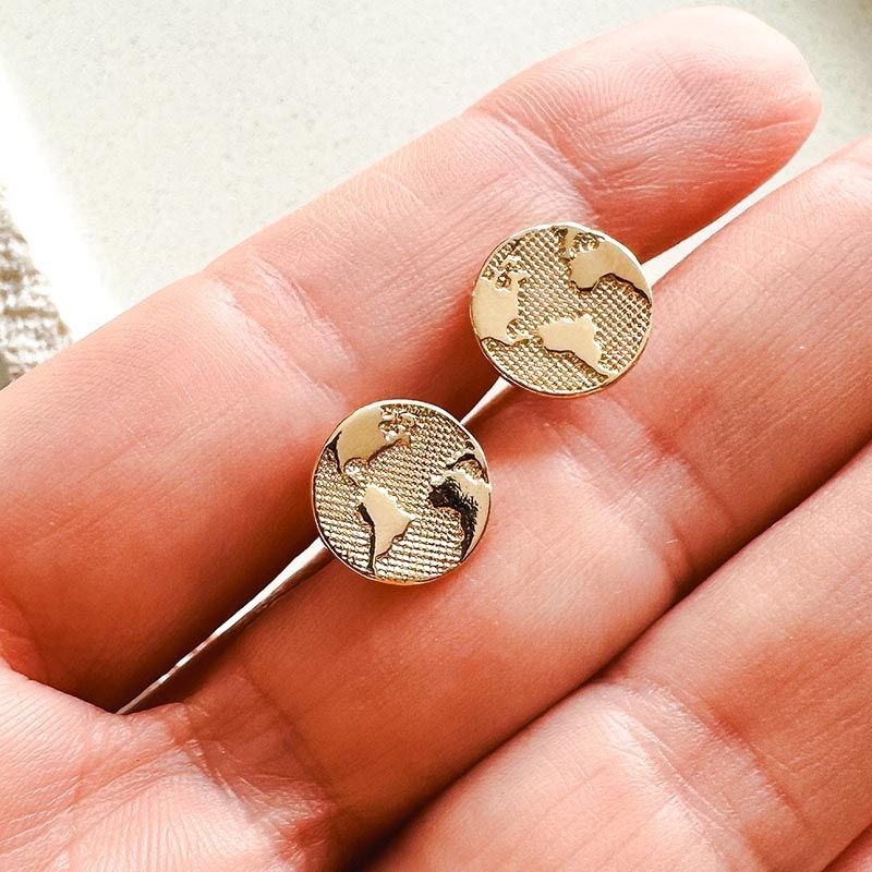 Minimalista, simbólico e atemporal, o brinco banhado com design de mapa-múndi é uma joia que representa conexão, liberdade e expansão. Seu formato pequeno e delicado, aliado ao acabamento texturizado com continentes em alto-relevo, traz sofisticação discreta e significado para o uso diário.