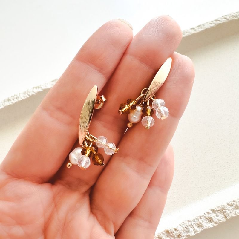 O Brinco Banhado a Ouro 18k Pérola de Água Doce e Cristais em tons caramelo e fendi é a escolha perfeita para mulheres que buscam um acessório delicado, sofisticado e com personalidade. Seu design combina uma base alongada com acabamento texturizado e um charmoso mix de pedras que trazem movimento, brilho sutil e um toque orgânico à produção.