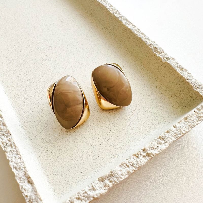 Brinco Bijuteria com Pedra Alongada de Resina – Bijuteria Elegante
