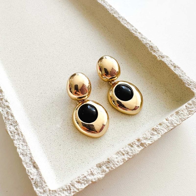 Este é um modelo duplo esférico, uma bijuteria moderna, elegante e marcante. Com topo arredondado polido e base circular com aplicação de pedra resinada central, ele cria volume e presença na medida certa.