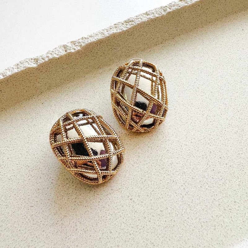 Com design tridimensional e estrutura vazada em formato de esfera oval, esse brinco mistura modernidade e ousadia. A trama externa cria um efeito de “gaiola” sofisticada, envolvendo uma base metálica polida que reflete a luz com intensidade.