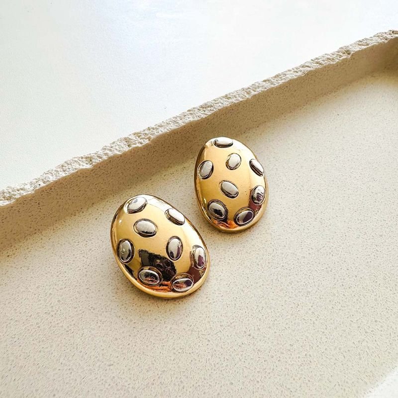Com base oval polida em tom dourado e detalhes em alto-relevo distribuídos pela peça, esse brinco traz um visual marcante, moderno e ao mesmo tempo vintage.