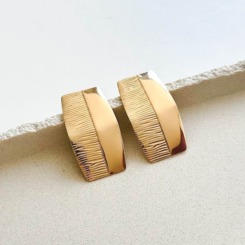 Com formato levemente curvado e base geométrica, esse brinco combina duas propostas no mesmo design: