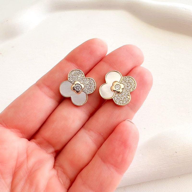Brinco Bijuteria Trevo Madrepérola e Zircônias