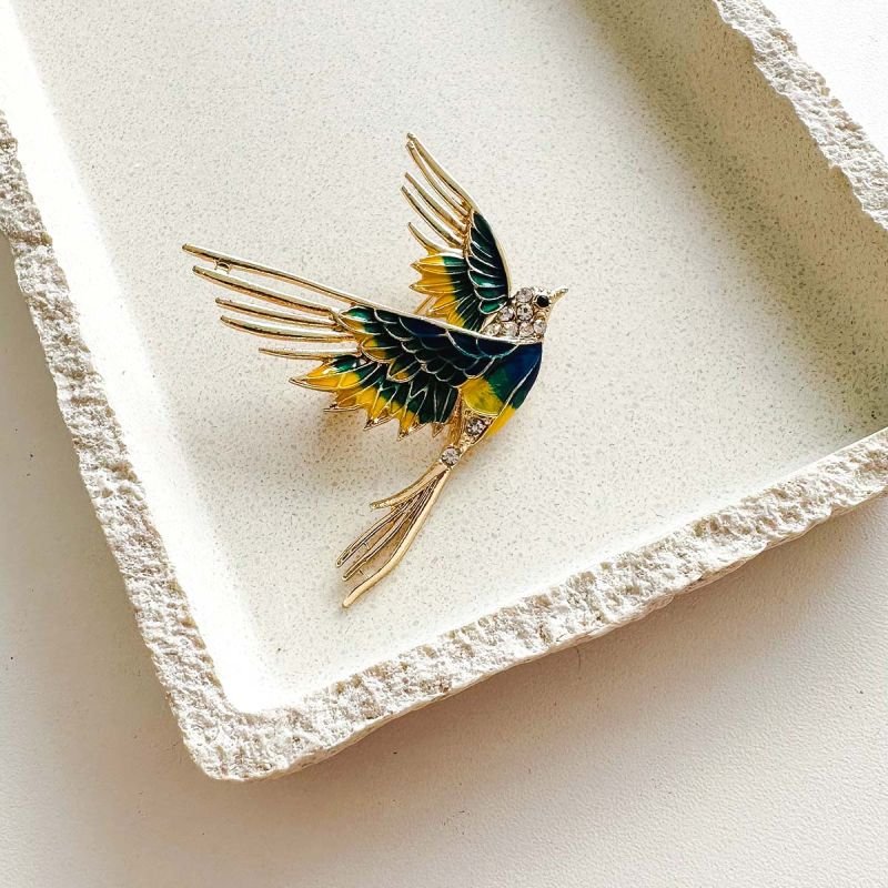 O Broche Bijuteria Andorinha Verde Esmaltada com Strass é uma peça marcante e cheia de personalidade, perfeita para mulheres que amam acessórios com significado e presença. Com asas abertas e detalhes minuciosos, ele transmite a sensação de movimento, liberdade e leveza — um verdadeiro símbolo de transformação e novos começos.