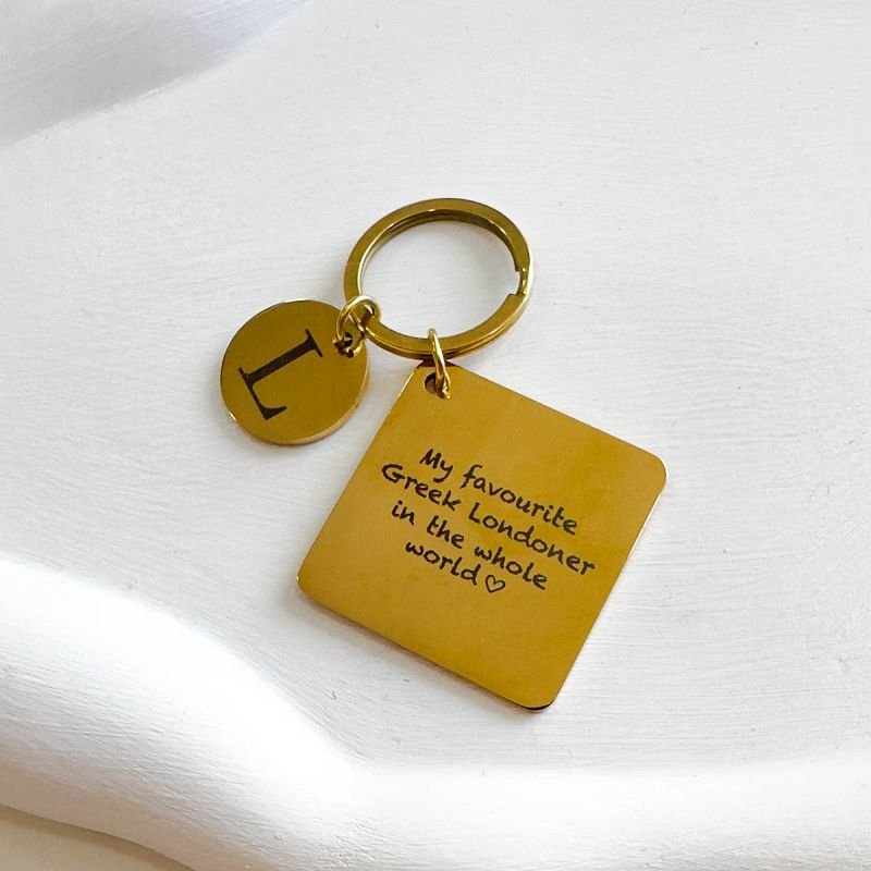 Chaveiro Aço Quadrado com Placa Dourado