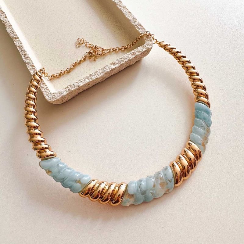 Colar Aro Bijuteria Ondulado com Resina