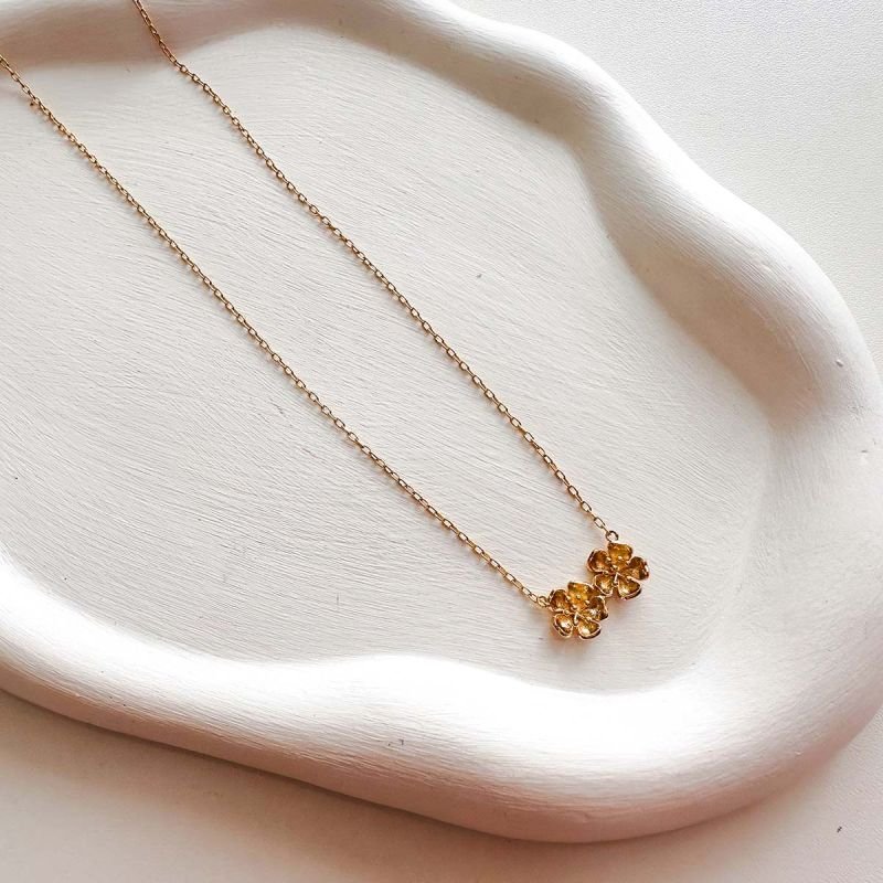 Um colar delicado e cheio de charme, perfeito para quem ama peças femininas com detalhes sutis. Sua corrente fina sustenta dois pingentes em formato de flores, sendo uma banhada a ouro 18k e a outra a ródio, criando um contraste sofisticado e versátil.