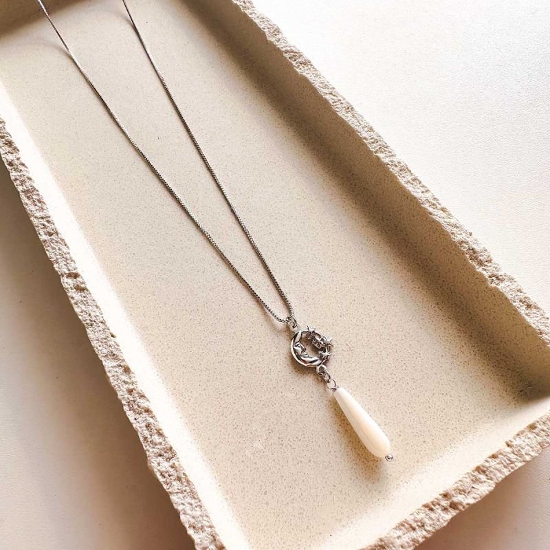 O Colar Banhado a Ouro 18k Lua e Gota de Madrepérola é uma joia que combina simbolismo, delicadeza e um charme místico irresistível. O pingente traz uma lua crescente com pequenas estrelas em alto-relevo, criando um visual poético que remete à intuição, ao feminino e aos ciclos da vida. A gota alongada de madrepérola acrescenta suavidade, brilho leitoso e uma elegância refinada, equilibrando perfeitamente o metal com o toque natural da pedra.