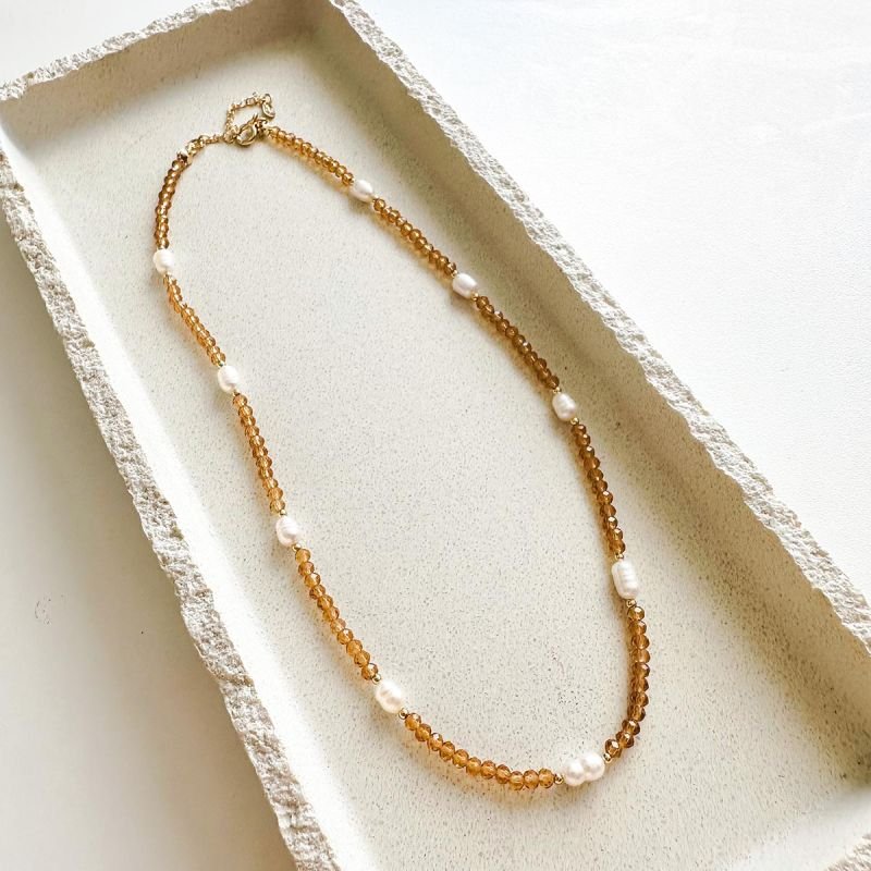 Um colar que combina cristais com pérolas de água doce, criando um contraste sofisticado entre brilho e organicidade.