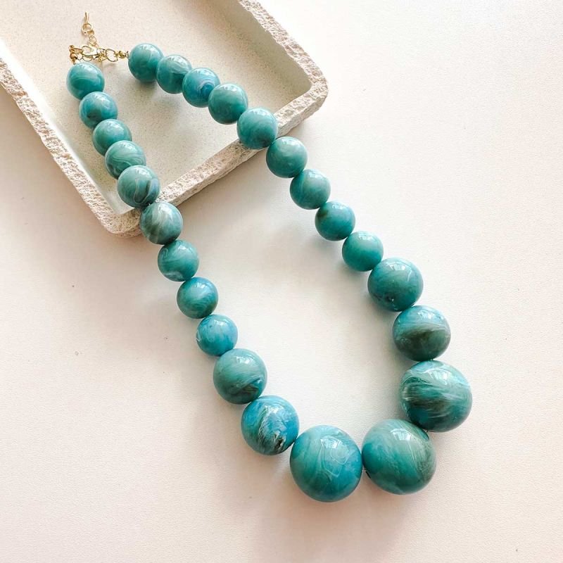 Com presença marcante e visual vibrante, o Colar Bola Turquesa é a peça perfeita para adicionar cor e personalidade ao seu look. As esferas em tons de azul turquesa possuem um acabamento marmorizado que imita o aspecto natural da pedra, refletindo frescor, liberdade e energia.