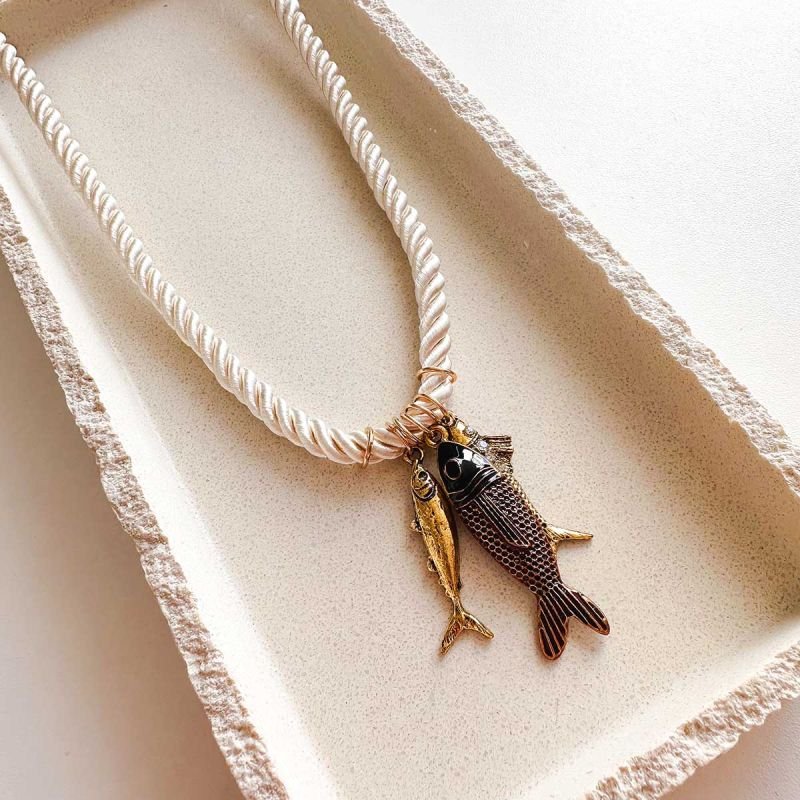 Autêntico e cheio de estilo, o Colar Corda Peixes combina o charme artesanal da corda trançada com o toque divertido e simbólico dos pingentes de peixe em metal. Uma peça que mistura textura, cor e significado — ideal para quem ama acessórios únicos e com personalidade.