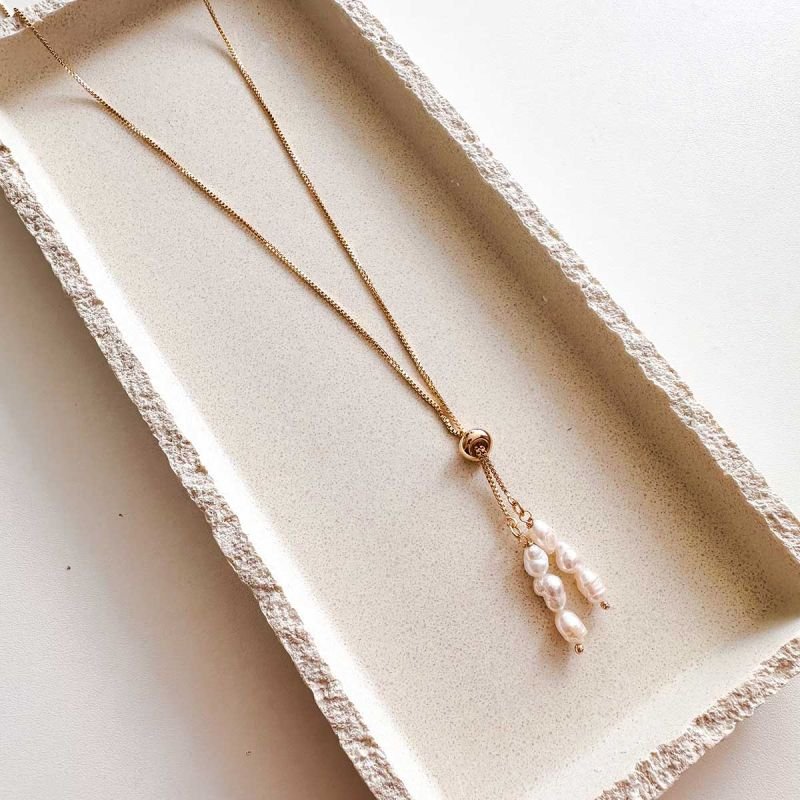 Colar Gravata Banhado a Ouro 18k com Pérolas de Água Doce