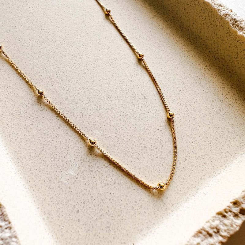 A fluidez da corrente somada à leveza das mini bolinhas traz um brilho sutil que deixa qualquer look mais refinado — um verdadeiro curinga no seu porta-joias.