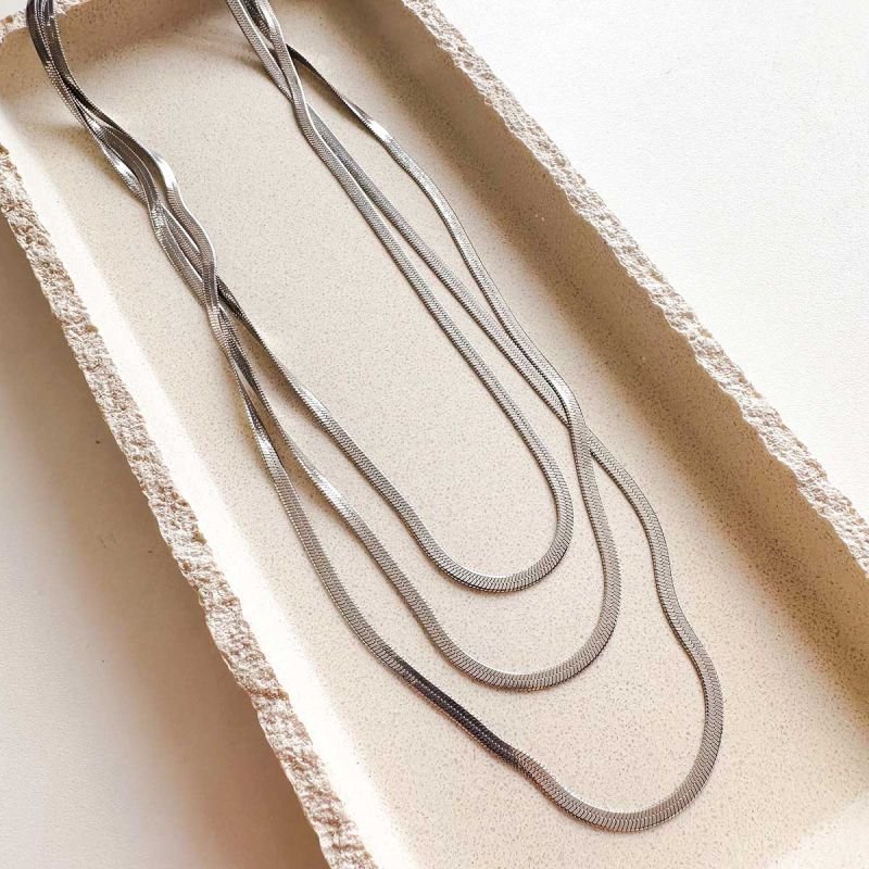 O Mix de Colar Aço Fita é a escolha perfeita para quem busca modernidade, brilho e elegância em um único acessório. Composto por três correntes estilo fita (snake), ele cria um efeito de camadas impecável, sofisticado e super atual — ideal para transformar qualquer look básico em um visual marcante.