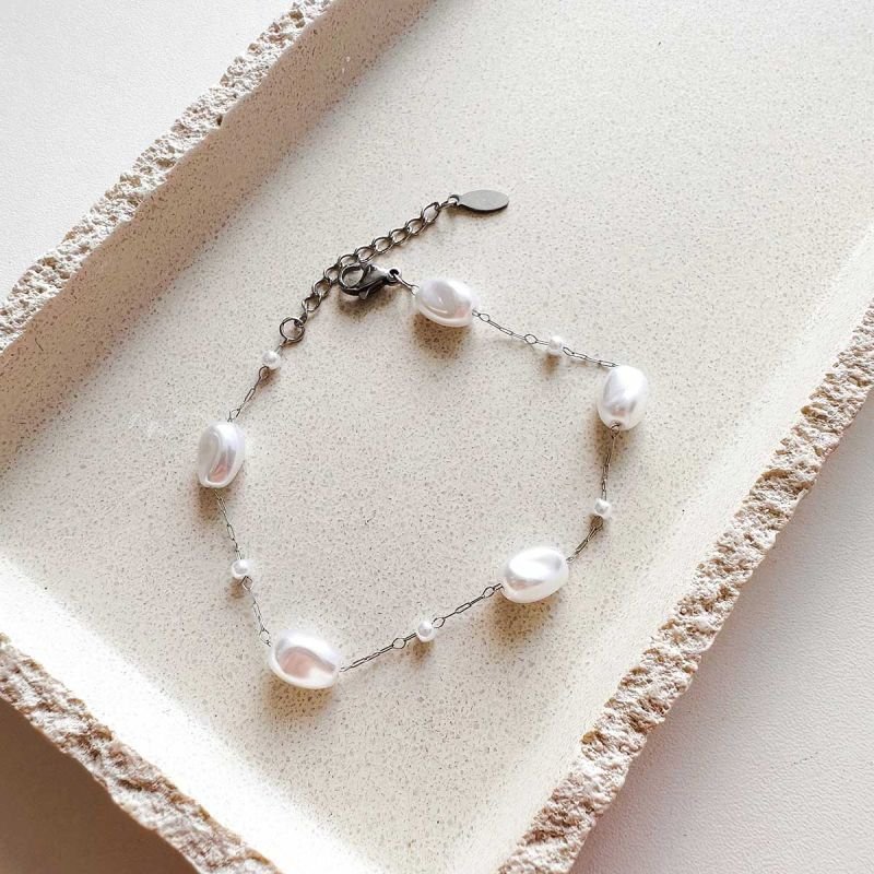 A Pulseira de Aço com Pérolas é a combinação perfeita entre leveza, modernidade e feminilidade. Feita em aço inoxidável — material resistente, hipoalergênico e que não escurece — ela traz pérolas em tamanhos variados distribuídas ao longo da corrente, criando um visual suave, romântico e extremamente elegante.