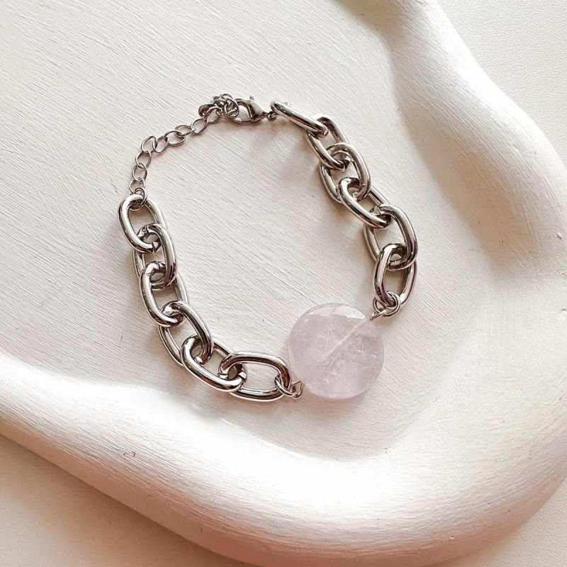 Dicas de uso: use sozinha para destacar a presença da pedra ou combine com outras pulseiras banhadas a ródio para criar um mix moderno e elegante. A ametista clara é perfeita para compor looks minimalistas e femininos.