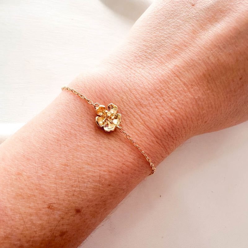 Uma joia minimalista que transborda feminilidade. A pulseira é formada por uma corrente fina e elegante que traz no centro uma flor em relevo, símbolo de delicadeza, renovação e beleza natural. Disponível em duas versões, cada uma com seu charme único: