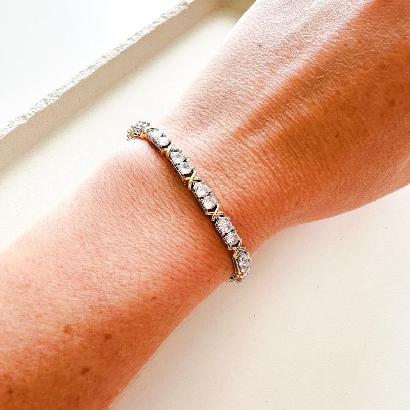 A pulseira riviera é um clássico absoluto da joalheria, e nesta versão bicolor ela se torna ainda mais versátil.